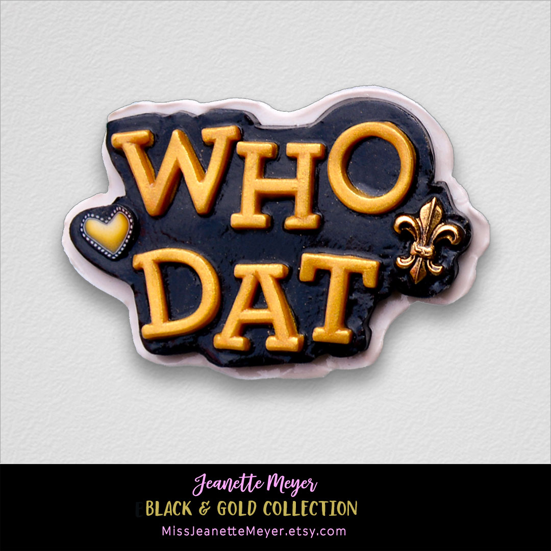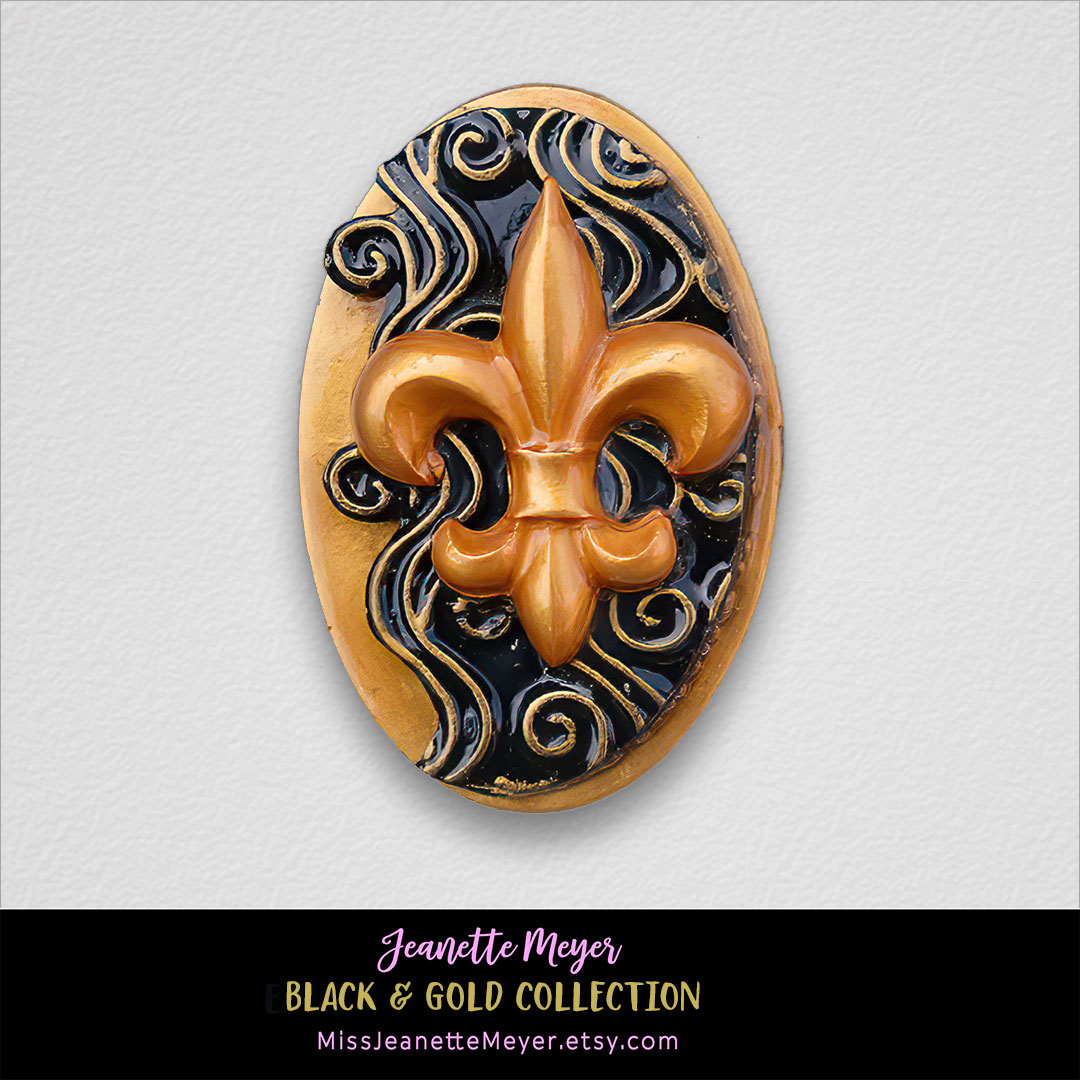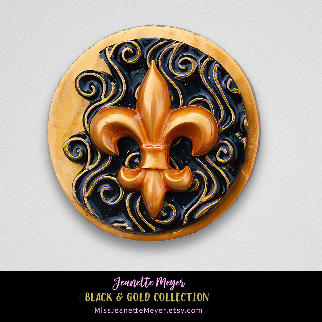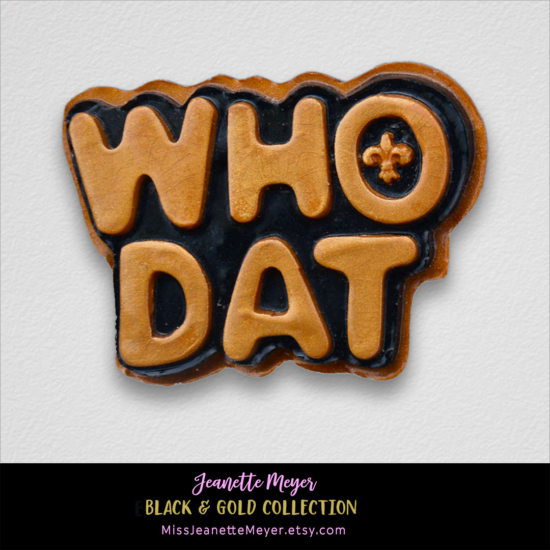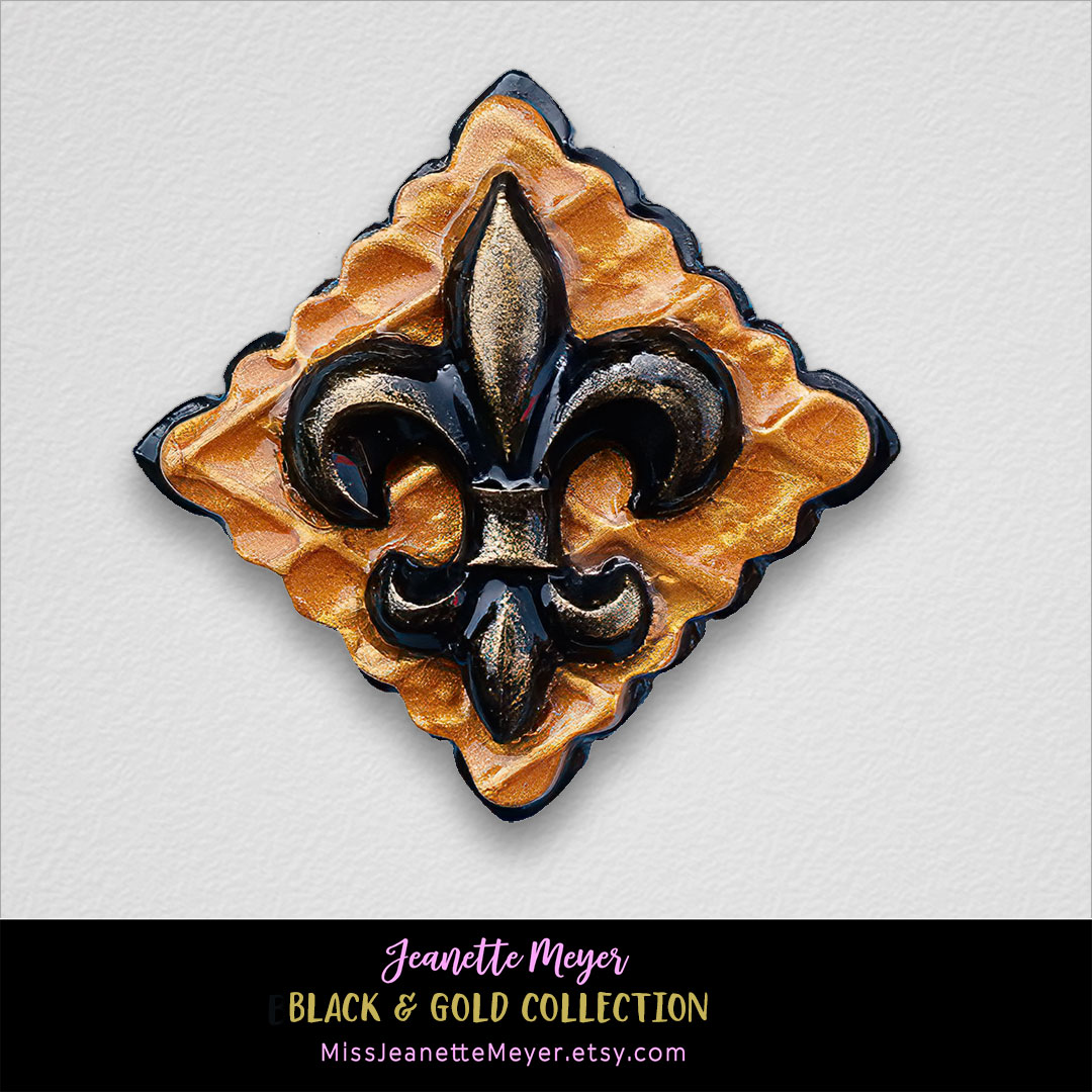 Explore the magic of Jeanette Meyer’s New Orleans Black and Gold collection, where every polymer clay pin and magnet celebrates the iconic colors of the home team. Each piece is a unique work of art that embodies the spirit of the Crescent City. These creations capture the rich culture and lively charm of New Orleans, serving as miniature tributes to its rhythm and soul—a testament to the city’s history, culture, and vibrant team spirit.
